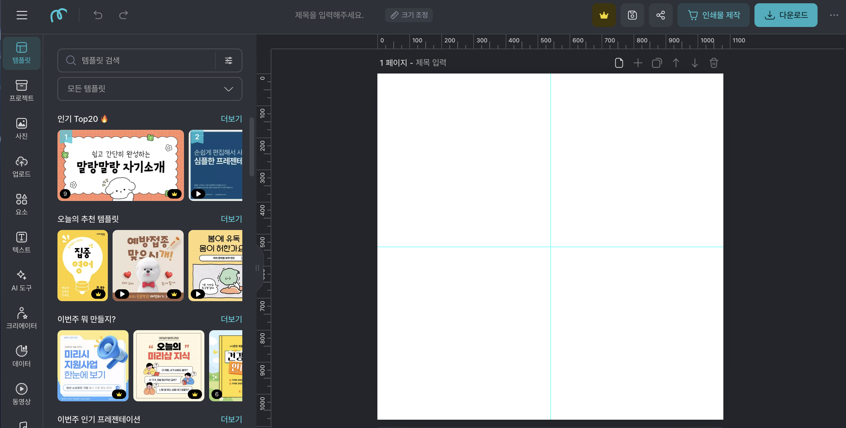 - 템플릿을 선택하거나 빈 캔버스를 선택해 직접 디자인할 수 있습니다.